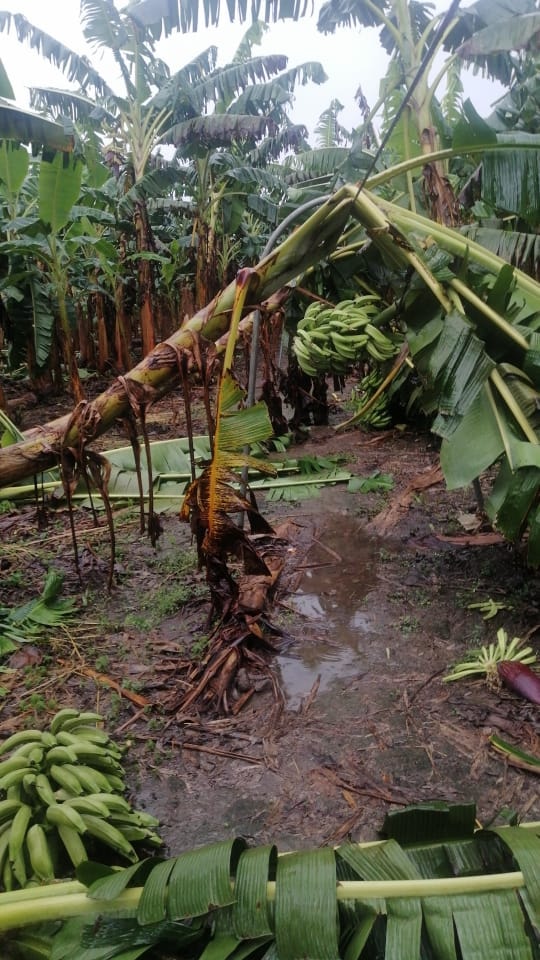 Fuertes vientos afectaron hectáreas de producción de plátano en Puerto Aurora
