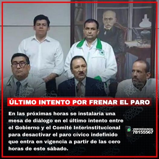 El gobernador Luis Fernando Camacho sería el gran ausente en esta mesa de diálogo y si estarían presentes los representantes del Comité Interinstitucional y dos ministros de Estado que están en la ciudad de Santa Cruz tratando de frenar esta medida de presión.