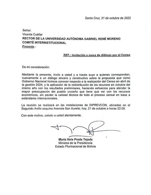 El Gobierno convoca Comité Interinstitucional de #SantaCruz a diálogo esta noche a las 22:00