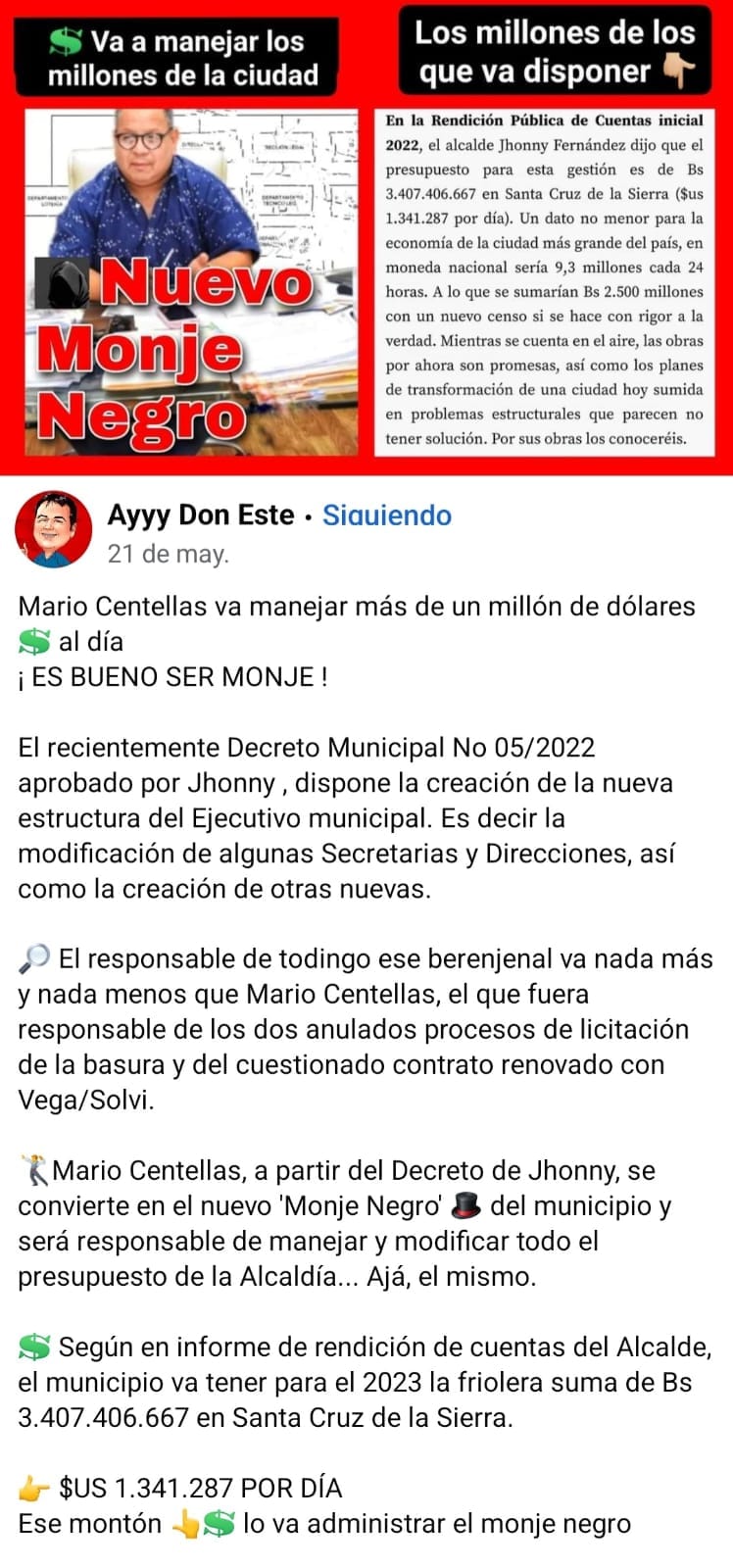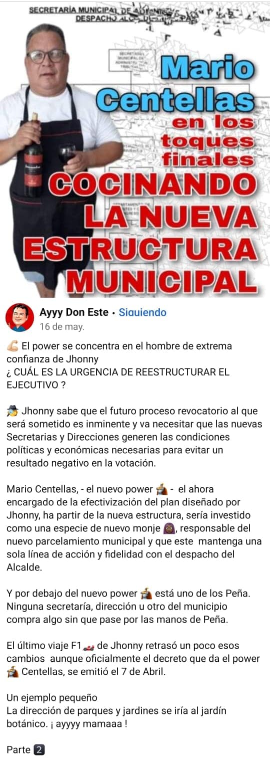 En el último tiempo se han ido varios secretarios pesados y cercanos al alcalde. Aunque sus salidas, según se dijo fueron por X motivos;🤨 hoy se sabe que en realidad esos secretarios dejaron sus cargos por no estar de acuerdo con la conversión de Mario Centellas de «mortal» a » omnipotente».