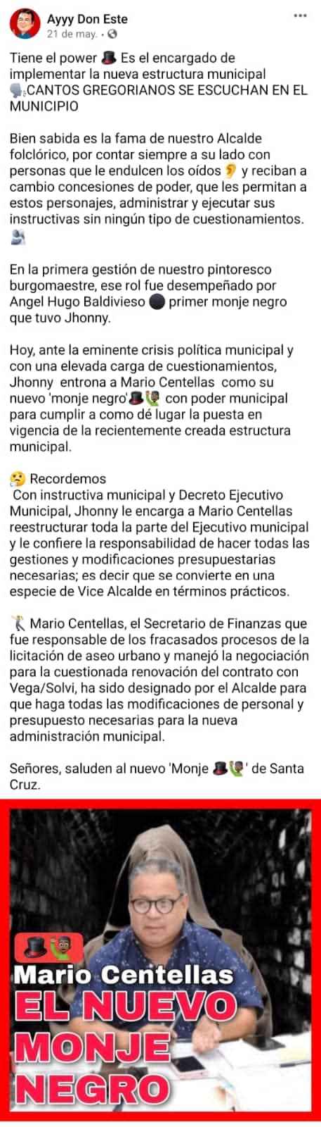 Como Monje Negro ocupa el lugar que en su momento tuvo Ángel Hugo Baldivieso – con sus marcadas diferencias – , Ángel Hugo era conocedor de la cosa pública y muy hábil en lo político, el de ahora no.