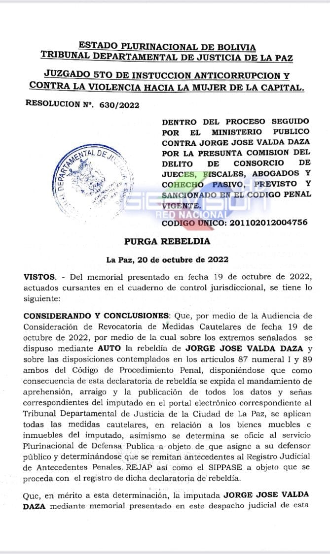 #LaPaz Juez Rodriguez deja sin efecto su orden de aprehensión contra Abogado Jorge Valda.