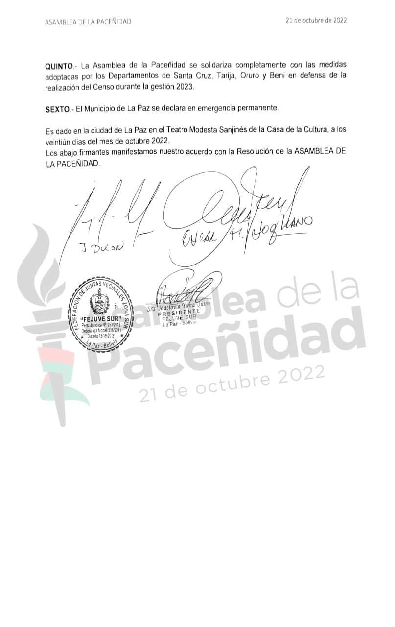 #LaPaz: La Paceñidad resuelve marcha y pide censo para el segundo semestre de 2023 👇