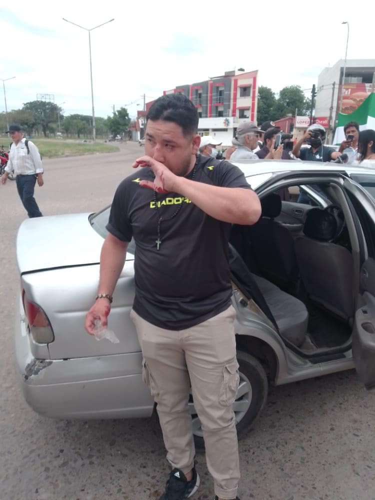 Agreden a equipo de prensa de Gigavision. Entre el 6to y 7mo anillo de la avenida Santos Dumont, grupos que buscaban levantar los bloqueos intentaron quitarle la cámara al camarógrafo y lo golpearon rompiéndole la nariz cuando él y la periodista estaban dentro del vehículo. Además, le quitaron el celular a la periodista con dos puñetes a las manos, la patearon y empujaron para evitar que ella grabe la agresión. Incluso el chofer del vehículo recibió patadas cuando intentó evitar que sigan golpeando al camarógrafo.