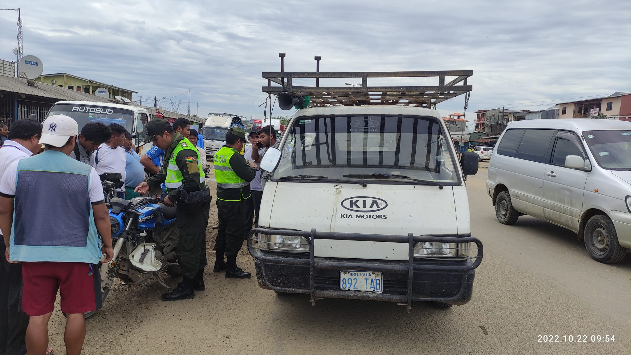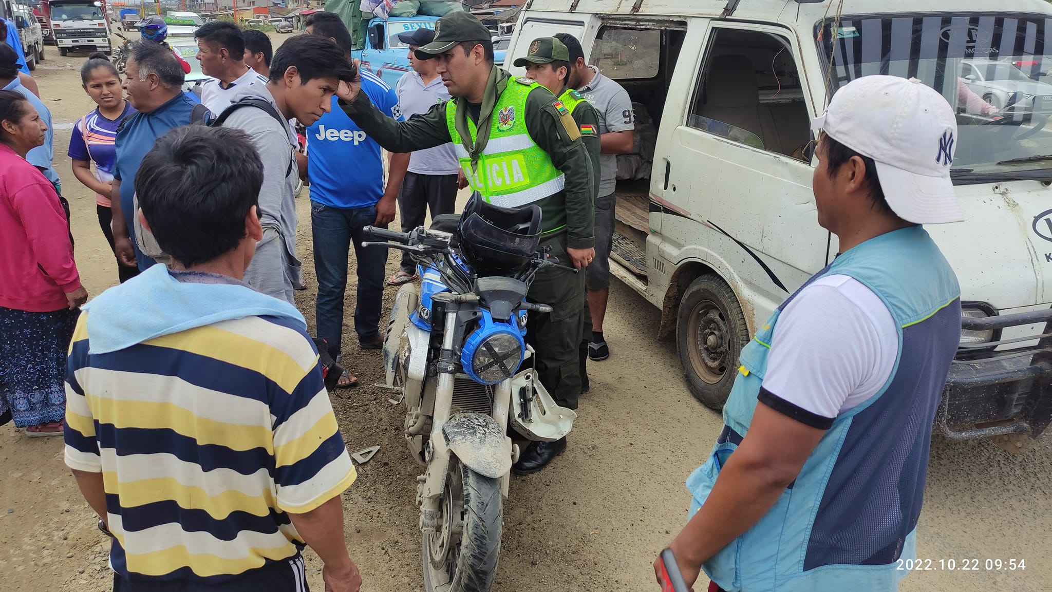 Aproximadamente 10:00 a.m. avenida panamericana de Entre Ríos, a la imprudencia de ambos conductores se produjo un choque entre una moto y un vehículo tipo trufi, solo con daños materiales de consideración.