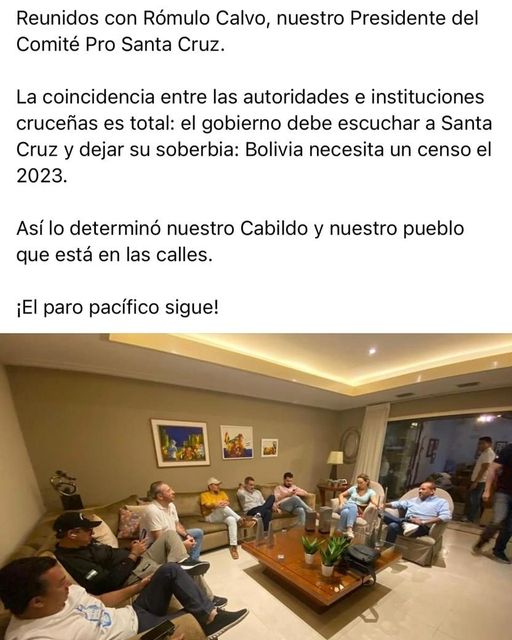 El post del Gobernador Luis Fernando Camacho en la casa del Presidente del Comité Cívico P…