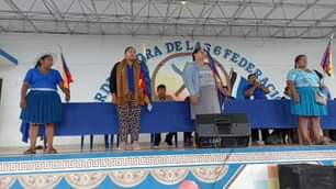 Candidatas para la mesa presidium del XII Magno Congreso Ordinario de la COCAMTROP, en la Coordinadora de las 6 Federaciones del Trópico en Laucaeñe