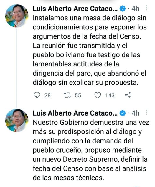Presidente Arce se pronuncia sobre reunión de ayer por el #Censo en #SantaCruz, mirá lo qu…