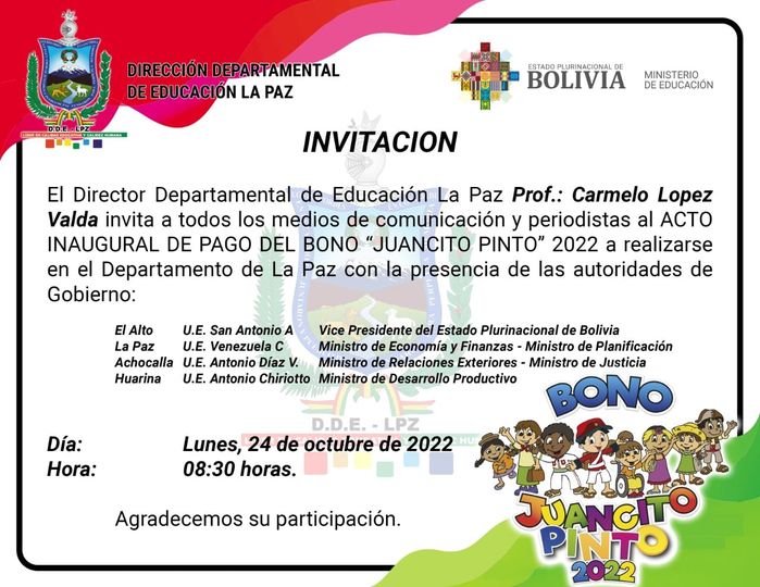 Este lunes arranca el pago del Bono Juancito Pinto