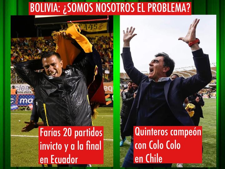 ¿Somos nosotros el problema? Dos ex técnicos de la selección boliviana triunfan en otros países: Farías es finalista invicto en Ecuador y Quinteros es campeón en Chile.