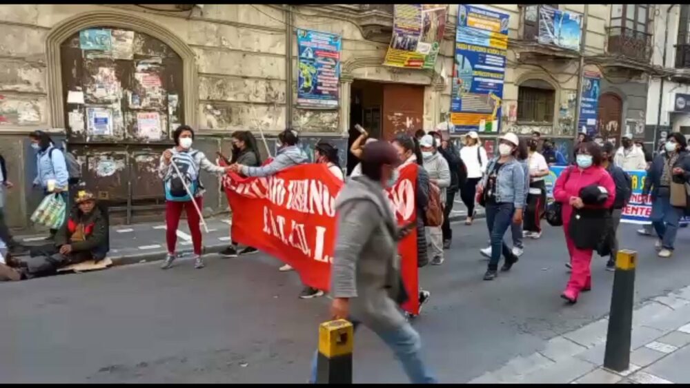🔵 #ANF | El magisterio urbano de #LaPaz marcha por el centro paceño. La movilización, que se vio impedida de avanzar en algunos lugares por los bloqueos de los mineros cooperativistas, exige que sus dirigentes sean reconocidos por el Ministerio de Trabajo. pic.twitter.com/6RuS4MrwrX
