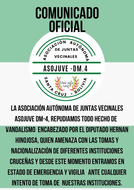 #ASOJUVE-DM4 entra en estado de emergencia y vigilia ante intento de toma de instituciones cruceñas