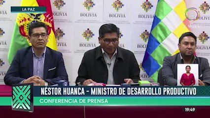🔵#Ultimo El ministro de Desarrollo Productivo, Néstor Huanca, informa que el Gobierno determinó suspender temporalmente las exportaciones de soya, harina de soya, azúcar, aceite y carne, hasta que "se restituyan las condiciones de normal abastecimiento". pic.twitter.com/vWOM5ARNSE