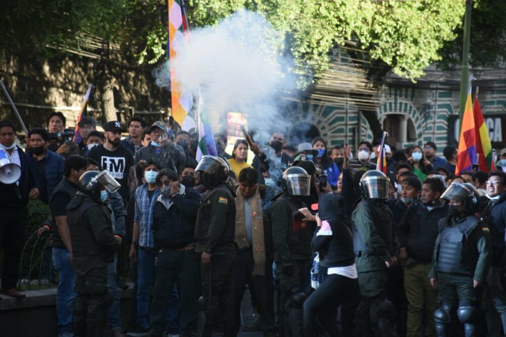 🔵 #ANF | Grupo del MAS irrumpe en la movilización de la paceñidad que pide censo el 2023
