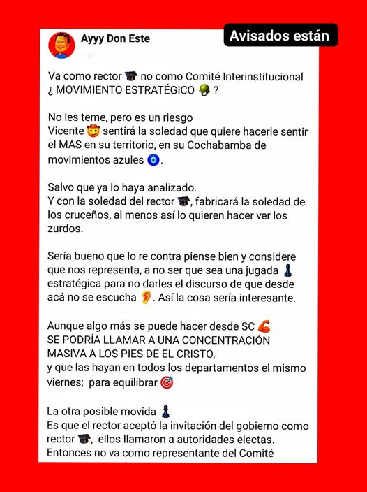 I A la espera de la decisión final del Comité Interinstitucional 👁️🗨️ Si deciden ir a Cocha