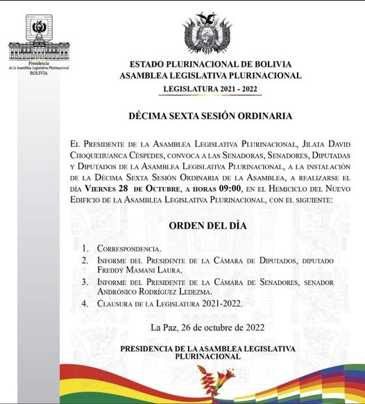 Vicepresidente convoca a sesión de asamblea este viernes 28 para clausura de Legislatura 2021- 2022Categorías NoticiasEtiquetas , Detrás de la Verdad, DTV, Facebook 26/10/2022 [vid_embed] Fuente: DTV => Recibir por Whatsapp las noticias destacadas