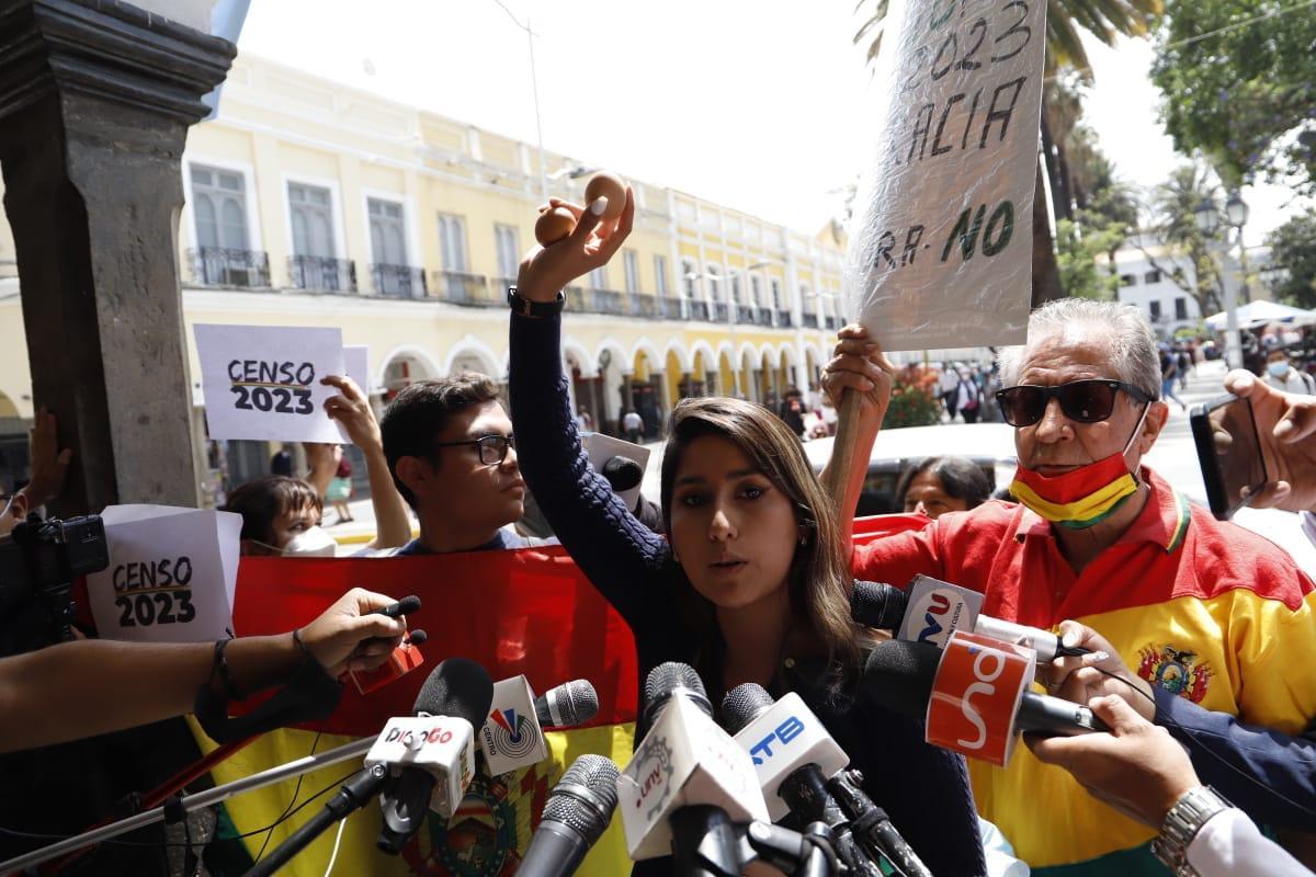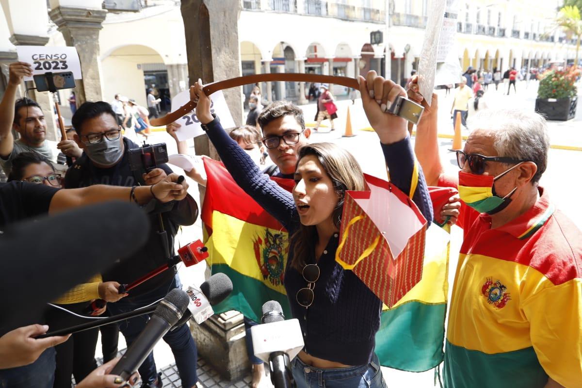La Activista Sofia Rocha junto a varios cívicos y plataformas fueron al frontis de la Alcaldía Cochabambina dónde exigieron al Alcalde Manfred Reyes Villa a jugarse por el Censo 2023 y dejar de ser tibio.