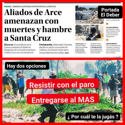 Es demasiado evidente 👀 la desesperación del gobierno. Se la juegan usando a sus llamados sectores sociales para meterle miedo a Santa Cruz con cercos, tomas y amenazas.