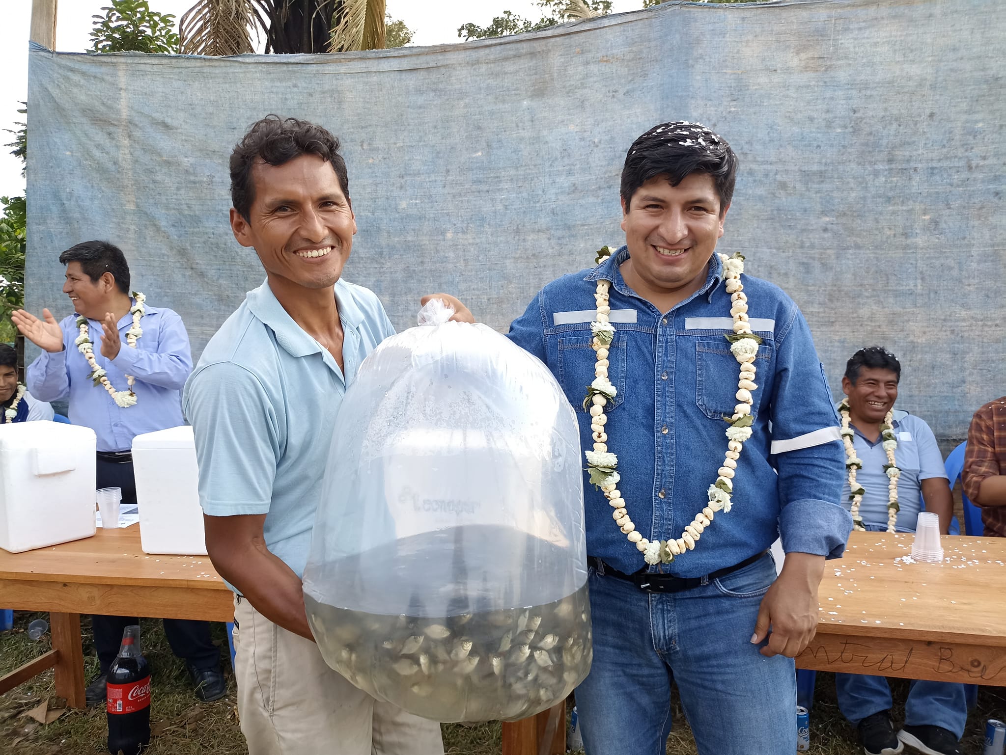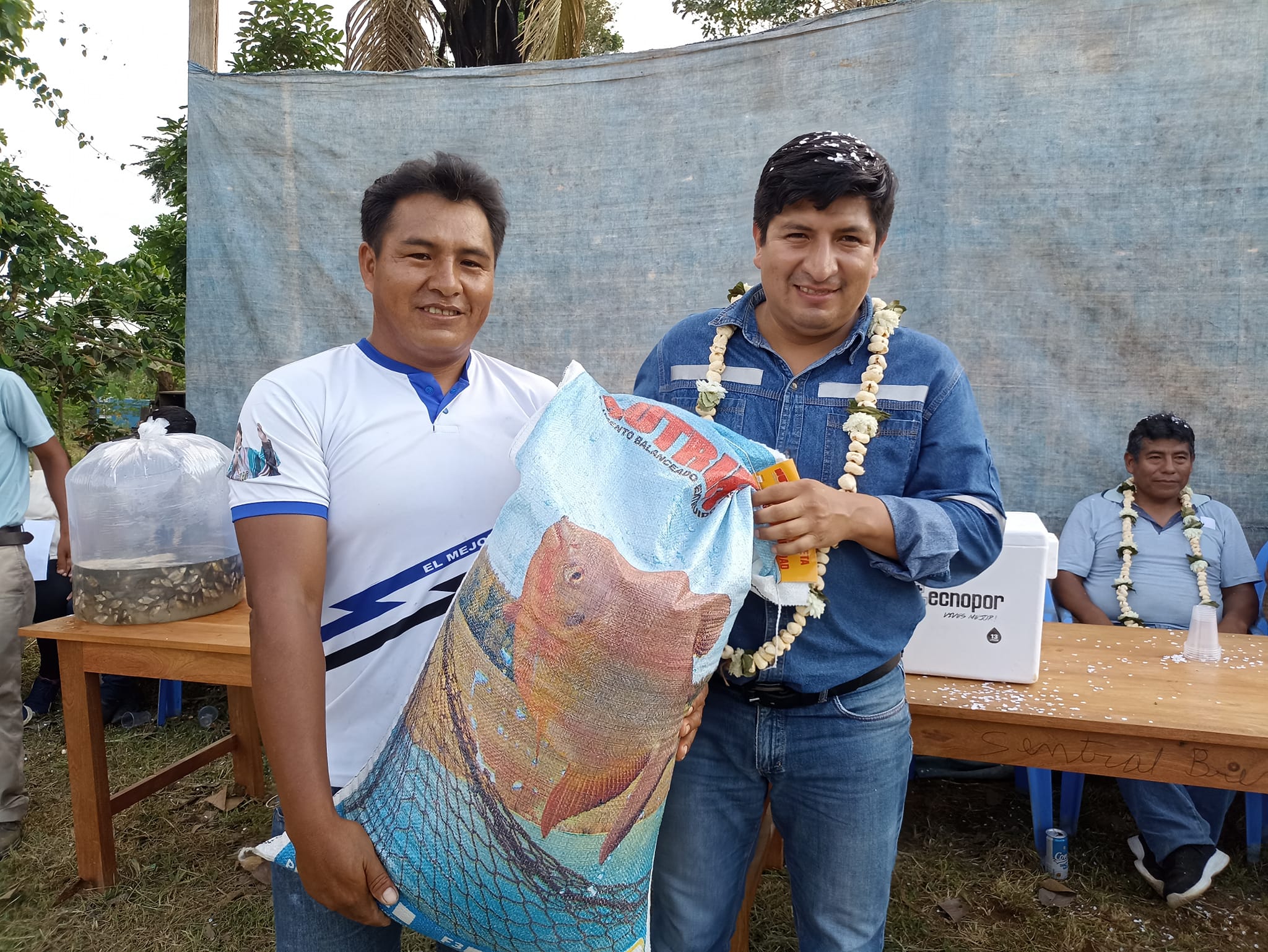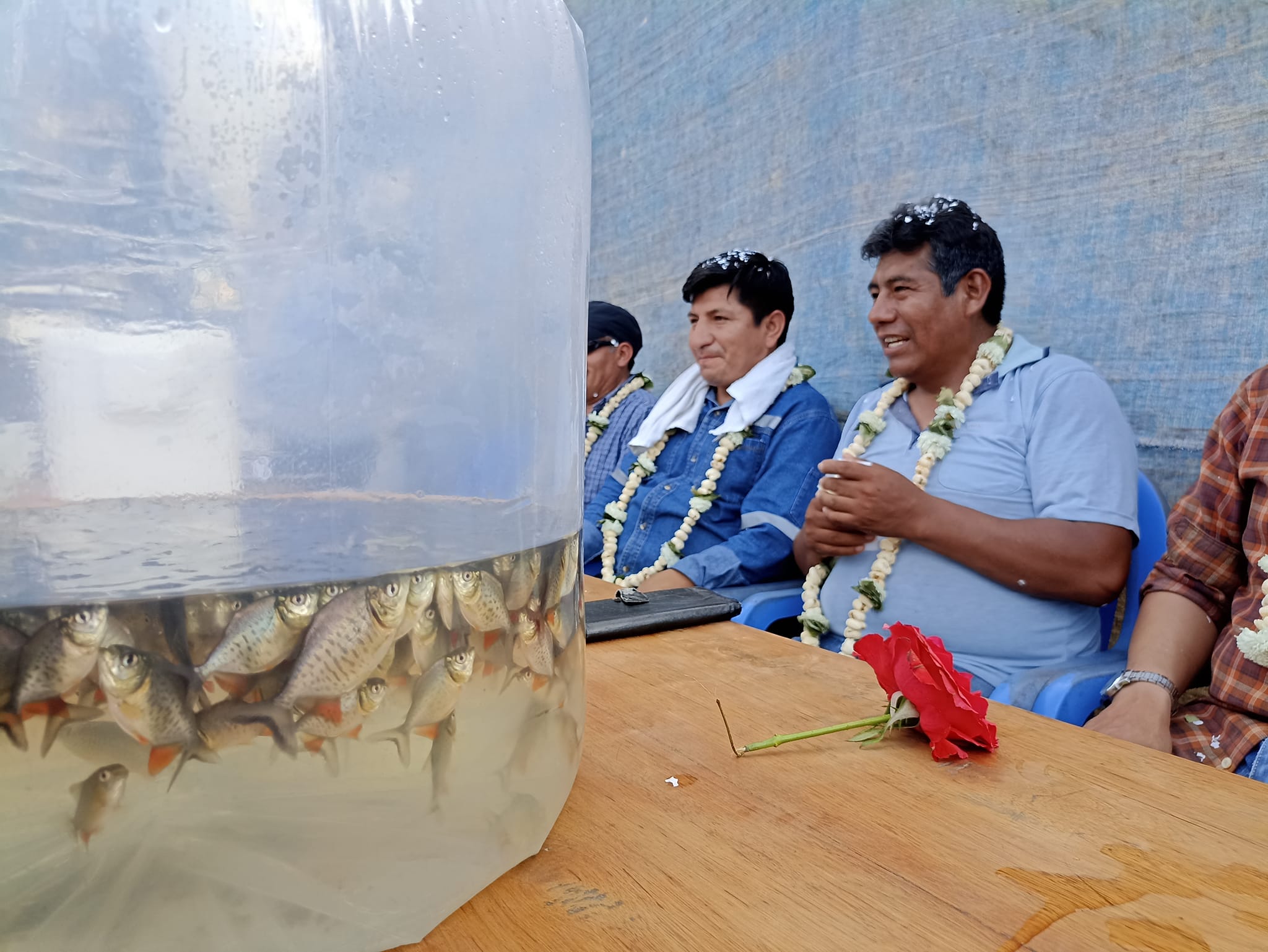 Entrega de 79 estanques piscícolas alevines y kit de insumos por el Ministerio de Desarrollo Productivo del programa EMPODERAR, en el sindicato Ramírez
