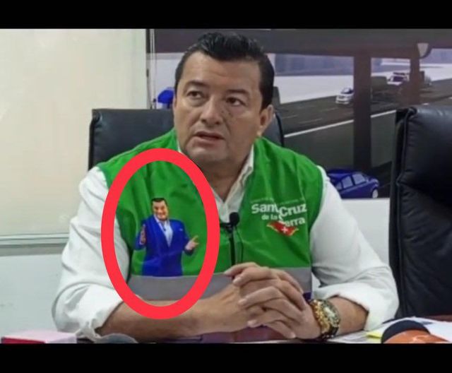 En principio no la creí, pero esta confirmado, el alcalde cruceño tiene un chaleco que utiliza con su propio rostro. De no creer!!