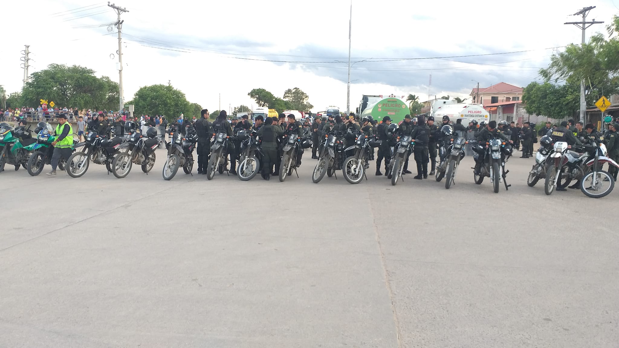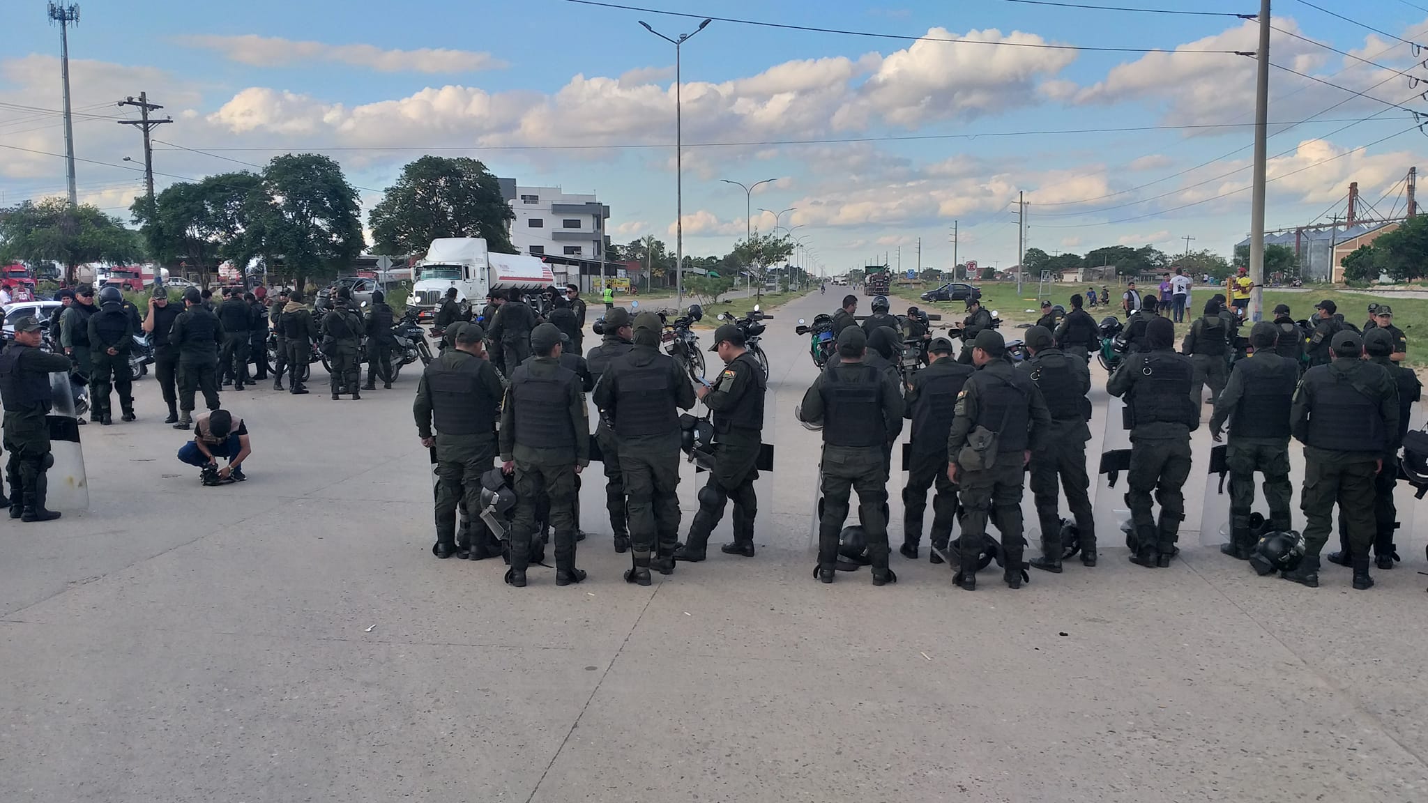 #SantaCruz: Ante el anuncio de una marcha desde la avenida Santos Dumont hasta la refinería de Palmasola para poder despejar la vía y permitir que los camiones cisternas con combustible salgan a los surtidores, un fuerte contingente policía llego hasta la zona para evitar enfrentamientos.