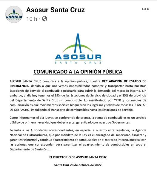 Ni en el 85% de los surtidores de todo el departamento de Santa Cruz