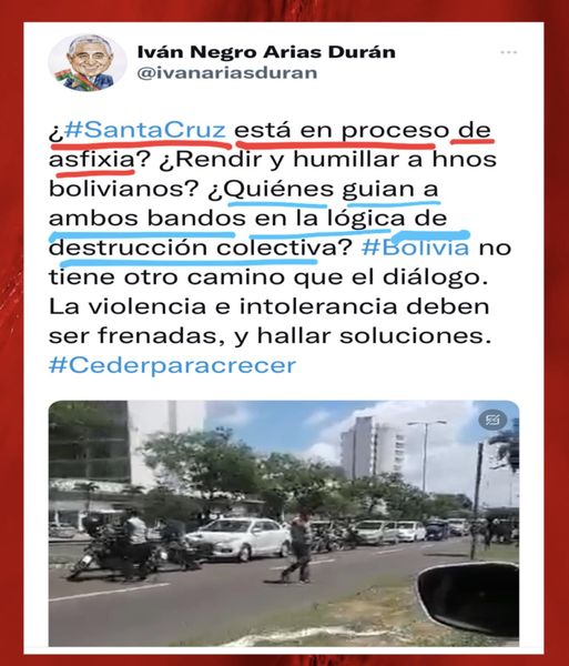 Santa Cruz: “¿Quiénes guían a ambos bandos en la lógica de destrucción colectiva?”
