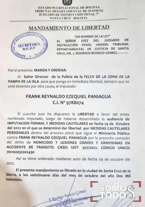 Después de horas de alegatos el dirigente de juventudes del MAS obtuvo medidas sustitutivas a la detención en el accidente de tránsito que protagonizó en la avenida Monte Cristo, donde arrastro con su vehículo a una adolescente de 14 años.
