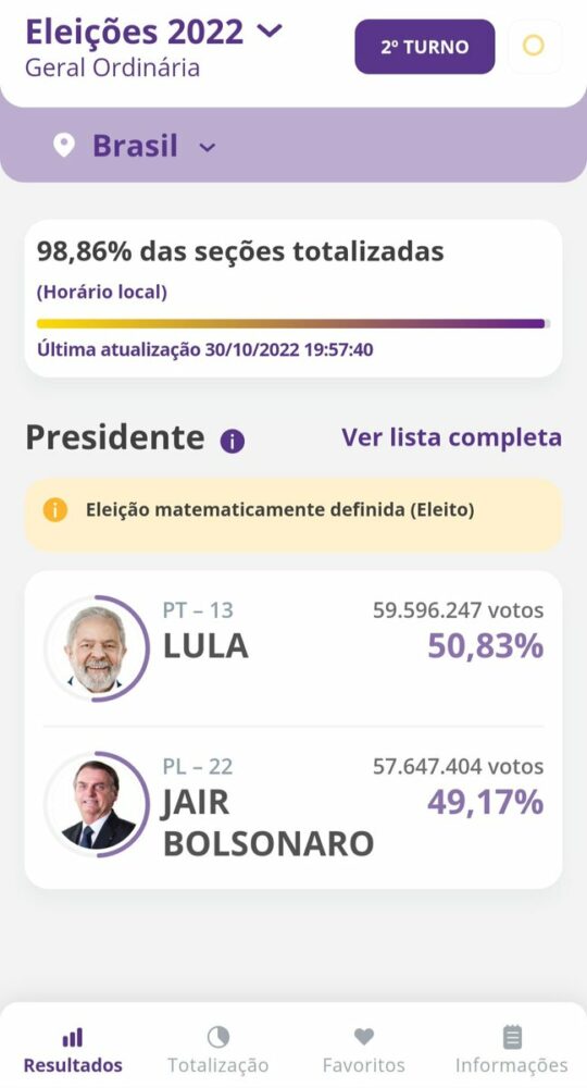 | #Mundo Al 98.86% de actas escrutadas, Lula Da Silva gana las elec…