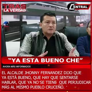 El alcalde Jhonny Fernández dijo, que ya esta bueno che con el paro y que es hora de sentarse hablar para no perjudicar al mismo pueblo Cruceño.