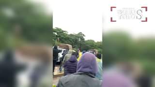 Vecinos se organizan y resisten la presencia de la policía, tras escoltar a un grupo de marchistas esta mañana.