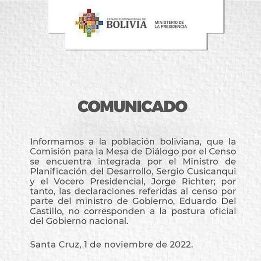 Cusicanqui y Richter desconocen a Del Castillo cómo postura gubernamental.