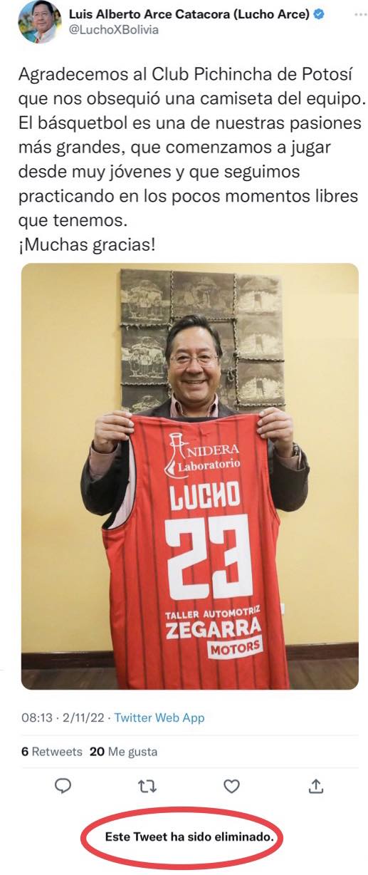 Luis Arce postea que está pensando en básquetbol mientras el país aguantando el palo represor.