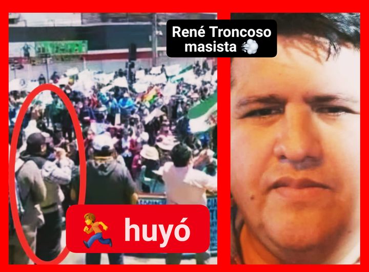 El masista 🧿 René Troncoso, tomó la palabra y rechazó el paro y comenzó a gritar en el micrófono «ahora sí, guerra civil, ahora sí guerra civil»… después salió corriendo 🏃🏃🏃🏃 sin dar la cara