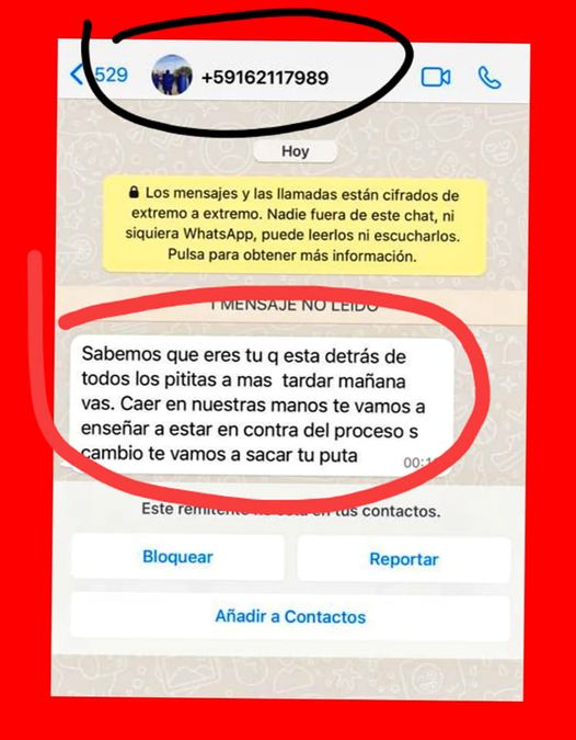 ANÓNIMO Y COBARDE 💢 El mismo tipo de amenazas están recibiendo periodistas que están cubriendo el paro y los enfrentamientos. ❌ En este caso incluso se están metiendo con sus familias.