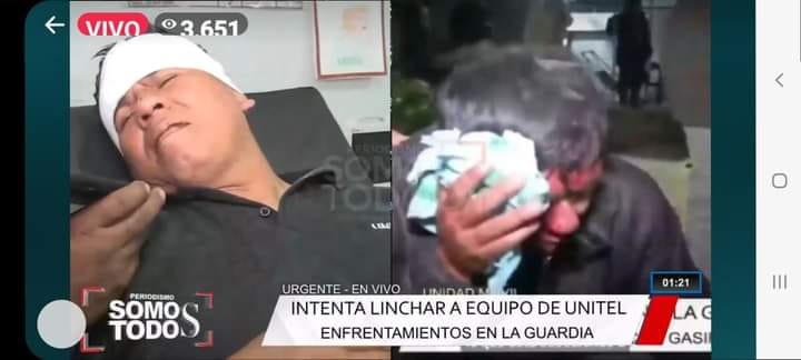 #SantaCruz: El periodista de la Red Unitel, Mario Rocabado, fue agredido por una turba delante de los policias que no hicieron nada para ayudar durante los enfrentamientos en el municipio de La Guardia recibiendo golpes en la cabeza, su camarógrafo, quien también fue agredido logró huir del lugar y ponerse a buen resguardo.