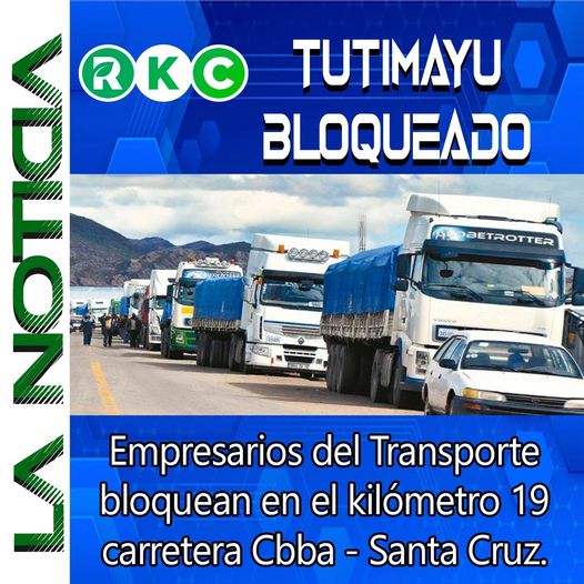 #RKC | Cámara de Transporte determina iniciar bloqueo de caminos, la medida se cumple en el kilómetro 19, sector Tutimayu de la ruta nacional Cochabamba Santa Cruz.