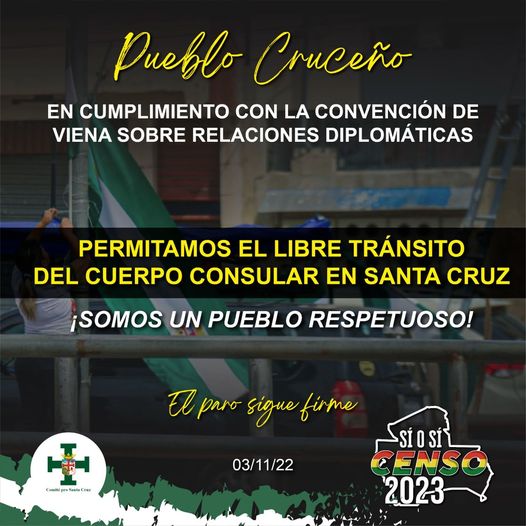 El Comité Cívico piden a la población dejar pasar a los cuerpos consulares y diplomáticos.