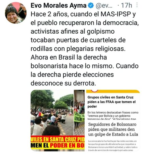 Evo:»Cuando la derecha pierde elecciones desconoce su derrota»