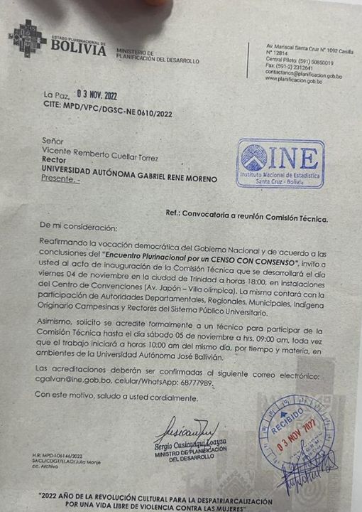 Rector de la #UAGRM recibe invitación a reunión de comisión técnica en #Trinidad para fijar fecha del #Censo