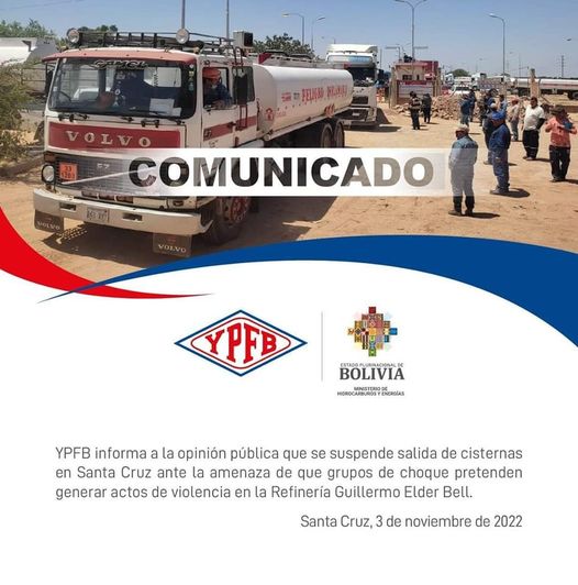 #YPFB suspende salida de cisternas de refinería de Palmasola