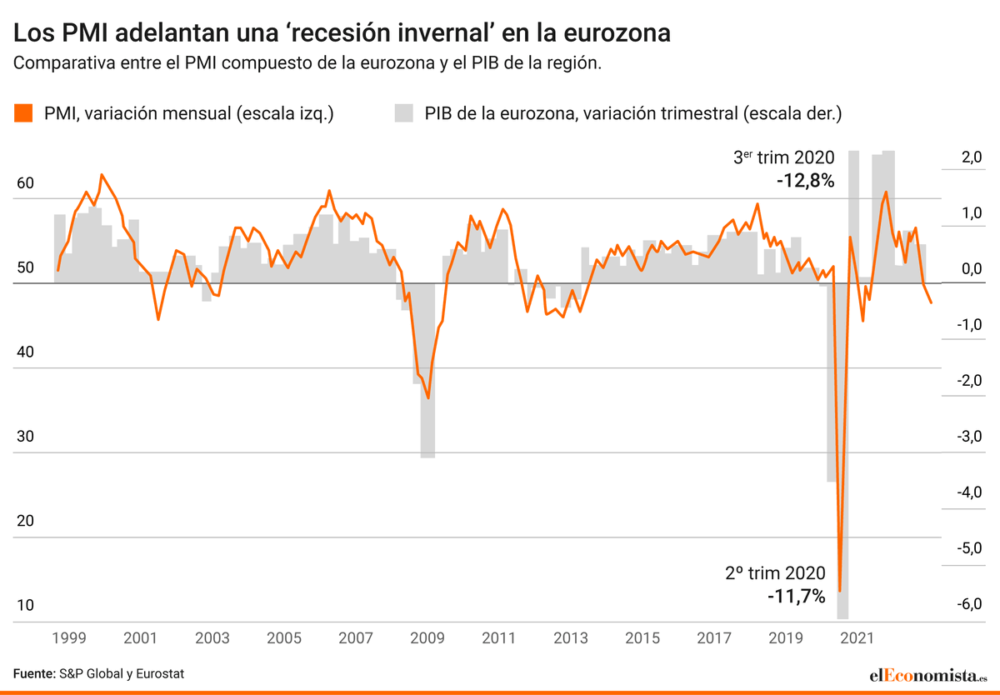 #Eurozona | Recesión asegurada, pero no por la guerra, sino por la acumulación de deuda y déficit, gasto público desbocado, sobre-regulación, incrementos de impuestos. Ante la pandemia incrementaron la misma batería de medidas que dispararon la inflación, agravada por la guerra. https://t.co/336PtwRTJA