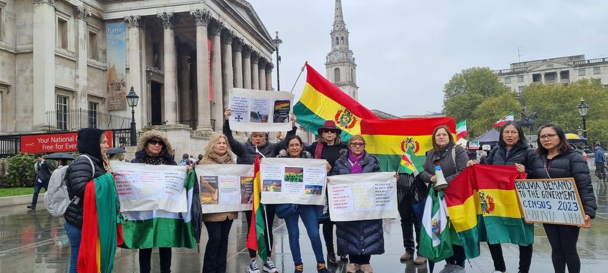 Residentes bolivianos en #Londres se movilizaron en rechazo a las acciones del gobierno de Luis Arce contra Santa Cruz y expresan su apoyo al censo 2023.