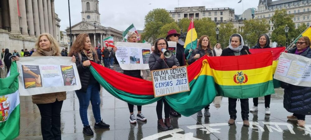 🔵#ANF | #Política Residentes bolivianos en Londres se movilizaron este sábado hasta Trafalgar Square en rechazo a las acciones del gobierno de @LuchoXBolivia contra Santa Cruz. Además, apoyaron que el censo se realice en 2023.