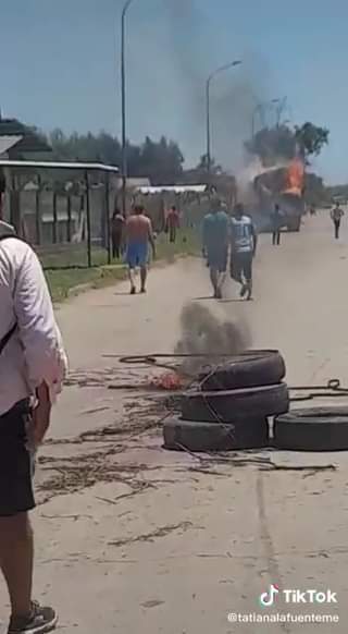 Así ardió el camión al que le prendieron fuego por cruzar un punto de bloqueo. Estaba cargado con paja. El presunto autor ya está detenido