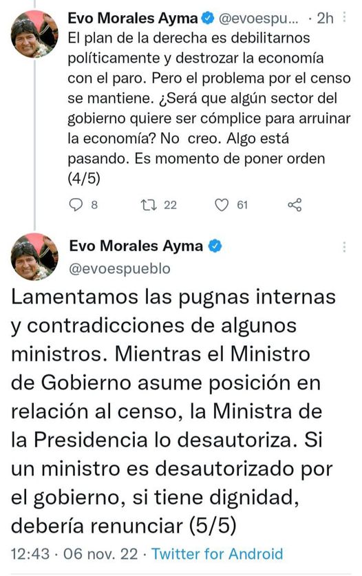 En su cuenta de twitter, el Jefe Nacional del #MAS se dirige contra el actual Gobierno.