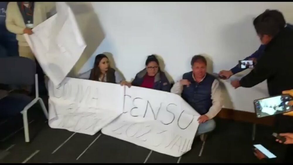 🔵 #ANF | Los diputados de CC Lissa Claros, Miguel Roca y María José Salazar se declararon en huelga de hambre en demanda de la realización del #censo en 2023. «Es una falacia total que el Gobierno ahora pretenda decir que es por lo técnico que no se puede realizar», afirmó Roca. https://t.co/sV6Xsg4krU