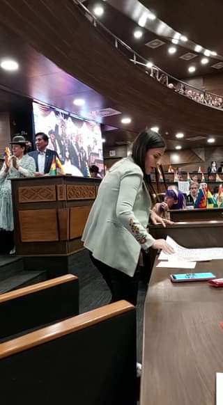 #LaPaz: Diputada de Creemos se interpone en camino del presidente Arce para pedir #Censo2023