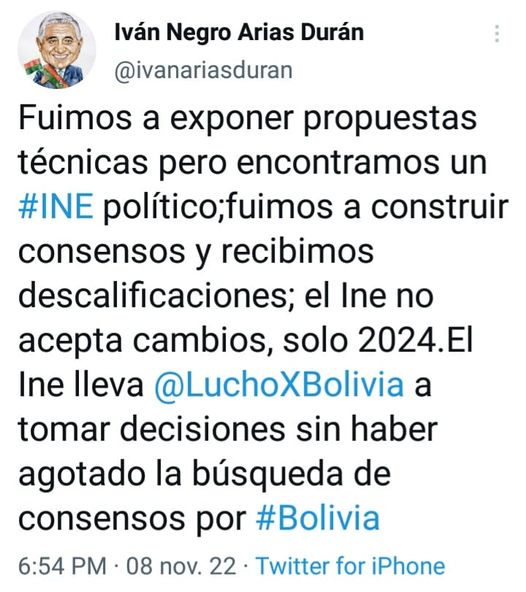 Alcalde de #LaPaz:»El INE no acepta cambios, solo 2024″