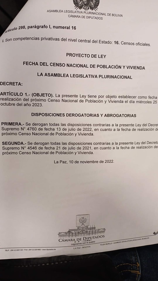 Carlos Mesa junto a la bancada de Comunidad Ciudadana, impulsará un proyecto de ley para establecer la fecha del censo el 28 de octubre de 2023.